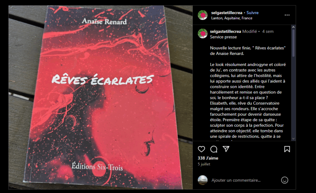 Critique presse (Instagram) par Selgastetillecrea pour la sortie de Rêves écarlates